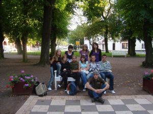 Nasza piątka w składzie: Justyna Urbaniak, Marysia Biało, Konrad Łada, Michał Stasiuk i ja oraz nasz opiekun, p. prof. Tomasz Stróż wraz z piątką uczniów z LO im. KEN w Stalowej Woli (opiekunem ich grupy była p. prof. Barbara Maciek) zostaje skierowana do Schwichtenbergu (północne Niemcy). Jedziemy dalej. Warunki mieszkaniowe, które zastaliśmy na miejscu, lekko nas przeraziły. Ujrzeliśmy bowiem kilka mało atrakcyjnych z wyglądu baraków. My zamieszkaliśmy w baraku o wdzięcznej nazwie „Haus 1”. Później dowiedzieliśmy się, że ośrodek ten powstał na terenie byłego kompleksu obozowego. Ta historia nieco nas zniechęciła. Pojawiło się wiele pytań („i my tu mamy spać?), zdaje się iście retorycznych. Kiedy już weszliśmy do środka, okazało się, że „nie taki diabeł straszny”. Niebawem przyjechał do nas sam burmistrz Schwichtenbergu (wyglądał jak św. Mikołaj) razem z panią Bożeną, która była odpowiedzialna za naszą grupę. Przywitali nas serdecznie i zaznajomili z planem pobytu. Następnie pojawił się Chris, o którym powstało wiele historyjek i piosenek, a wszystko przez jego „stuningowane” czerwone punto z białą dermą na fotelach. Tak, dziś jestem pewna, że to dzięki niemu Stalowa Wola tak bardzo zaprzyjaźniła się z Tarnobrzegiem. A zatem ów Chris zabrał nas na spacer po okolicy, nie powiem – całkiem urokliwej. Pełno zieleni, rozległe łąki. Dłuższy spacer uniemożliwił nam jednak deszcz i tak upłynął nam pierwszy dzień w Niemczech.