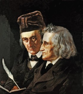 Wilhelm Karl Grimm oraz jego rodzony brat Jacob Ludwig Karl Grimm (wybitni językoznawcy), spisali krótkie baśniowe historyjki i publikowali je początkowo w jednym z berlińskich czasopism. Historie o charakterze baśniowego horroru przyniosły im tak wielką popularność, że postanowili stworzyć i wydać ich zbiór, który opracowali na podstawie swoich wieloletnich badań nad mitami, podaniami i opowieściami ludowymi. Zbiór ten ukazał się w latach 1812 - 1815 pt. „Kinder- und Hausmärchen”. Pierwsze wydanie zrobiło prawdziwą furorę i od razu zostało przetłumaczone na wiele języków. W roku 1819 ukazało się drugie wydanie, tzw. "Wielkie Wydanie", które autorzy rozszerzyli o kilka dodatkowych baśni (łącznie zgromadzili ich 200).
