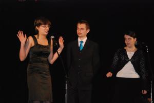 Jorg: Przejdźmy do kabaretów. „Dwie pierwsze plus oni" wykorzystali banalny temat blondynki, ale było to całkiem znośne. Podobała mi się też „Scena małżeńska" w wykonaniu kabaretu „Espera". Skecz widziałem już kiedyś w telewizji, ale rola zrzędliwej żony w wykonaniu Klaudii Brzozowskiej była z pewnością nie gorsza niż w oryginale zagranym przez Joannę Kołaczkowską (kabaret Hrabi). Równie dobrze wypadła Agata Marciniak w scence „Shirley Valentine". Gratuluję pomysłu na poruszenie dość ważnego społecznie tematu. Wykonanie, choć bez mikrofonu trochę zbyt ciche, też należałoby zdecydowanie pochwalić.