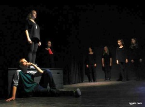 Tu nawiedzają go duchy jego ofiar, które pojawiają się jako wyrzuty sumienia i przybliżają widzom tę postać. Z jego rozmów z nimi dowiadujemy się wiele zarówno o nim samym jak i o powodach, które stały za tragicznymi wydarzeniami, do których doszło w szkole chłopaka. Wszystko to unaocznia widzom, co może mieć wpływ na umysł nastolatka i co tak naprawdę może doprowadzić go do takiego stanu, w którym nie będzie on dostrzegał innego wyjścia i będzie gotów popełnić nawet największą zbrodnię. Grupa pięciu aktorów, których widzimy na scenie, to dręczące głównego bohatera głosy: sędziego, psychiatry, policjanta i dyrektorki szkoły, do której chłopak uczęszczał. Cały spektakl jest jakby formą retrospekcji. Z jednej strony poznajemy motywacje głównego bohatera, które pchnęły go do tego makabrycznego czynu, a z drugiej obserwujemy też jego postępującą przemianę.
