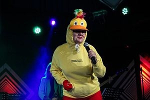 którym zobaczyliśmy duet, Julię Walczynę z 4f i Karola Prusia z 2c, którzy cudownie zaśpiewali piosenkę Dawida Posiadło "W dobrą stronę", podrywając widzów z foteli. Z pewnością na uwagę zasługiwał też szalenie wzruszający układ taneczny zaprezentowany przez Agnieszkę Pikus z 4f. Niewtajemniczonych poinformuję jedynie, że Agnieszka na co dzień ćwiczy w Wozowni, gdyż jest tancerką Formacji Tanecznej "Fram". Jej taniec poruszył naprawdę bardzo wiele osób. Po koncercie stałam przez chwilę w pobliżu wyjścia i słyszałam na własne uszy, jak wielu opuszczających Wozownię widzów (uczniów i nauczycieli), rozpływało się w ochach i achach nad jej tanecznym talentem. Nie mogę również nie wspomnieć o występie, który chyba wszystkim widzom zapadł w pamięć. Mam tu na myśli piosenkę "Kaczka dziwaczka", którą zna bez wątpienia każdy, i w której zobaczyliśmy na scenie Annę Bartoszek z 4g oraz panią prof. Wiesławą Krawczyńską-Rybacką, która nie tylko pojawiła się w kostiumie kaczki, ale też miała przy sobie wszystkie wymieniane w piosence akcesoria, a cały swój wykon wsparła zabawną choreografią. Pani profesor sprawiła, że widzowie wstali z miejsc i bili jej brawa, śmiejąc się przy tym do łez. Moim zdaniem to naprawdę fantastyczne, że nauczyciele w naszej szkole równie chętnie angażują się w tego typu artystyczne wydarzenia, bo nie tylko pokazują się swoim uczniom z innej strony, ale też pokazują, że są ludźmi z krwi i kości i tak jak my potrafią się bawić. Nie mniejszy zachwyt publiczności wzbudził również nasz pan dyrektor, który tym razem pojawił się na scenie w duecie z Julią Walczyną z 4f. Oboje brawurowo i bardzo energetycznie wykonali utwór „Mój jest ten kawałek podłogi” z repertuaru zespołu Mr. Zoob.