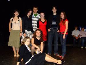 Voy: Nietypowy był za to taniec towarzyski w wykonaniu Kamila Jabłońskiego i Michała Smykli (2b). Widok dwóch facetów kręcących pośladkami - w pewnej odległości od siebie - wystarczył jednak naszej „wyrobionej” widowni do wznoszenia okrzyków: "geje" i "pedały". Wprawdzie ja nie uważam, żeby występ obu panów był jakoś specjalnie zachwycający, ale jestem pełen podziwu dla ich odwagi - zapewne spodziewali się, jakie emocje wywoła ich taniec wśród przedstawicieli przyszłej polskiej inteligencji, a jednak zatańczyli.
