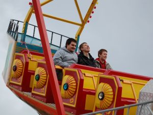 Fleurette: Pełni poseansowych emocji podzieliliśmy się na mniejsze grupki i wyruszyliśmy dalej, aby rozejrzeć się po Parku. Viki i Spider pobiegli od razu na diabelski młyn, mylnie nazwany przeze mnie wcześniej London Eye ( bo eksponatem to on na pewno nie był). Miało być strasznie, a okazało się, że emocje na młynku porównywalne były do tych na rybach czy podczas gry w bierki. Lekko rozczarowani udaliśmy się więc na „Pirata” (dla niewtajemniczonych: wielka kołysząca się łódka), gdzie poziom adrenaliny podniósł się nam czterokrotnie, a wszystkie wnętrzności podeszły do gardła. Mało brakowało, a zobaczylibyśmy śniadanie Viki. Na szczęście do tego nie doszło. Na koniec pozderzaliśmy się samochodami na autodromie i zrobiliśmy sobie pamiątkowe fotki przy co ciekawszych miniaturkach.