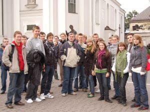 Fleurette: Następnie szybko zapakowaliśmy się do autobusu i już po kilku minutach byliśmy w Wadowicach, mimo protestów kilku osób, które wolały zrezygnować z odwiedzenia tego miejsca na rzecz dłuższego pobytu w Krakowie. Zwiedziliśmy dość szybko Dom Rodzinny Ojca Świętego i obejrzeliśmy zgromadzone tam, niezwykle ciekawe pamiątki z nim związane. Razem z Jorgiem podziwialiśmy głównie narty, kapelusze i stroje Ojca Świętego, a także rozmawialiśmy na różne inne ciekawe tematy, niekoniecznie związane z miejscem, w którym się akurat znajdowaliśmy.