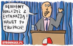 Prawo do godnej śmierci jest jednym z najwazniejszych praw przysługujących człowiekowi w imię jego godności. Uporczywa terapia, co więcej wbrew woli chorego, jest po prostu upokorzeniem. Smutne, ze niektóre środowiska opowiadają się za upokarzaniem ludzi w myśl chorych idei.