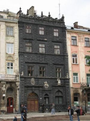 Następnie przechodzimy przez rynek. Na uwagę zasługuje tu Czarna Kamienica, bardzo dobry przykład polskiego renesansu. Rozglądam się wokoło. Kamienice są gorzej utrzymane niż w Krakowie lub nawet w Zamościu. Brak tu także turystów. To chyba najbardziej zwróciło moją uwagę. W Krakowie ciężko przejść przez Rynek Główny, nie minąwszy nikogo pstrykającego zdjęcia. We Lwowie pusto. I brak także ludzi o innym kolorze skóry. Brak nawet ludzi o typowo niesłowiańskich rysach.