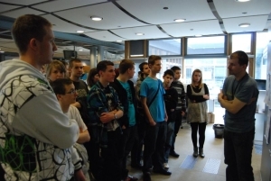 J: Każdy zmęczony stresującą pracą dziennikarz może więc kontemplować piękno natury przy wysadzanych m.in. bambusem skwerach. Tym, którzy preferują aktywne formy spędzania czasu, redakcja oferuje własny basen oraz klub fitness. Oprócz tego pracownicy mają do dyspozycji firmową kawiarnię i restaurację. Marcin Osojca - pracownik dodatku "Co jest grane" i "WO", który zaopiekował się naszą grupą i oprowadzał nas po budynku Agory – opowiadał nam między innymi o idei, która przyświecała architektom, i z powodu której siedziba Agory nie jest dziś klasycznym wieżowcem. Mianowicie chodziło o to, aby redaktor naczelny, zarząd spółki i pozostali pracownicy urzędowali na jednym piętrze - w przeciwieństwie do wieżowców, w których ludzi sytuuje się warstwowo z uwzględnieniem hierarchii ważności. Dowiedzieliśmy się także, że niepełnosprawni nie napotkają tu żadnych barier utrudniających im poruszanie się, mogą więc swobodnie pracować w tym budynku jako dziennikarze. Co potwierdzają zresztą fakty, bo na wózku porusza się przecież znana dziennikarka Ewa Milewicz. Po krótkiej rozmowie w bambusowym gaju udaliśmy się więc dalej.