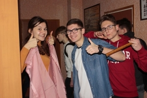 Sala gimnastyczna z okazji studniówki zmieniła się nie do poznania. Budowana jest scena, ustawiono też jakieś wysokie kolumny, a pod sufitem podwieszono granatowy materiał podświetlany lampkami. Czyżby to miało być wnętrze jakiejś zburzonej antycznej budowli? Niestety, to tylko nasze przypuszczenia, bo nie spotkaliśmy tam nikogo, kto mógłby udzielić nam jakichkolwiek informacji. Zaintrygował nas jednak wielki telebim zawieszony na jednej ze ścian. Wychodząc z sali gimnastycznej natknęliśmy się w drzwiach na maturzystę, który powiedział nam, że tegoroczna studniówka będzie podobno transmitowana w Internecie na żywo. Jeśli to prawda, byłoby to coś absolutnie nowego w historii naszej szkoły.