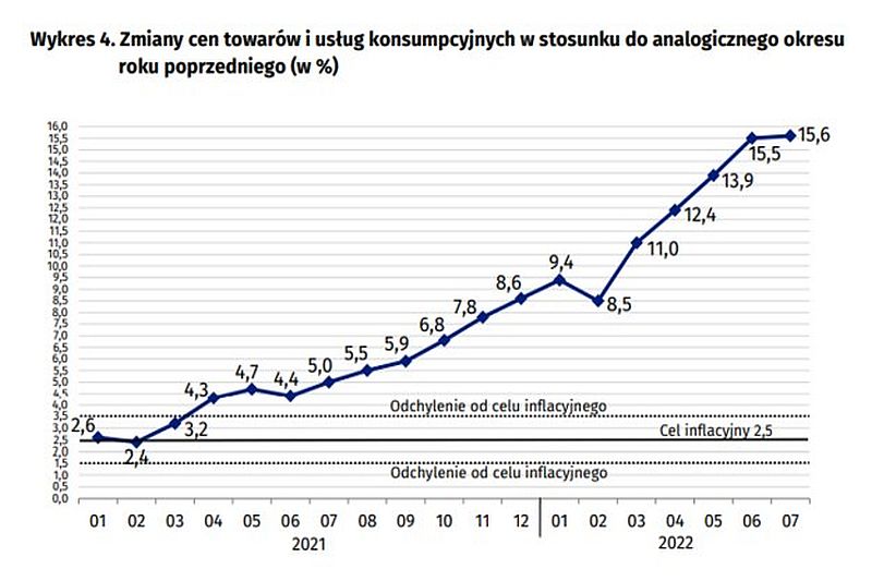 uruchamiając jeszcze w lutym tarczę antyinflacyjną, która jednak nie za wiele dała, gdyż w międzyczasie wybuchła wojna na Ukrainie.W efekcie tej wojny inflacja zaczęła przyspieszać i jak podał GUS w czerwcu minionego roku wynosiła ponad 15% (dokładnie 15,5%).