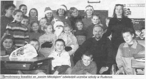 W miniony czwartek samochód pełen darów: produktów spożywczych, odzieży, artykułów papierniczych oraz środków czystości wraz z ekipą wolontariuszy tarnobrzeskiego liceum, wyruszył w Bieszczady. Mimo ponad trzygodzinnej podróży nikt nie był zmęczony, wręcz przeciwnie, świadomość, że wkrótce spotkamy się z dziećmi, dopingowała nas. Zostaliśmy serdecznie przyjęci. Przyjechaliśmy z "własnym" Świetym Mikołajem, który osobiście obdarował dzieci paczkami - mówi Sylwia Gurdak, jedna z uczennic tarnobrzeskiego liceum. Podstawówka w Rudence, jak wiele szkół ma kłopoty finansowe. Rodzice uczęszczających tam dzieci nie mają za co kupić zeszytów, książek potrzebnych do nauki, nie mówiąc o mikołajowych prezentach... - sytuacja finansowa w gminie jest ciężka. Rodziny są wielodzietne, a na ich utrzymanie pracuje niekiedy tylko jeden z rodziców. Niektórzy żyją na skraju ubóstwa, dzieci często przychodzą do szkoły z pustym żołądkiem.