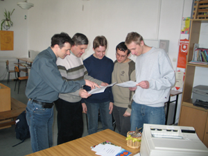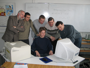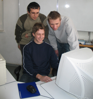 Profesorowie Andrzej Lipiec i Zbigniew Ryba oraz uczniowie Artur Ślusarz, Łukasz Wiśniewski, i Mateusz Sabat pracują nad wprowadzeniem najnowszych informacji do witryny.