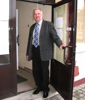Dariusz Bożek, dyrektor „Kopernika”, z uśmiechem zaprasza swoich przyszłych uczniów.