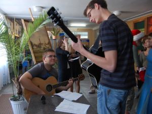 Uczniowie Kopernika podczas happeningu muzycznego na dużej przerwie.Tym razem zabawę przeniesiono jednak z korytarzy szkolnych do pracowni językowych, aby nie dezorganizować pracy całej placówki. Przez dwie godziny odbywały się gry, zabawy, nauka piosenek i quizy. Uczniowie grali także w bule, brali udział w karaoke oraz przedstawiali scenki ze znanych bajek w językach obcych, rozmawiając po przedstawieniach na ich temat z publicznością w języku, w którym sztuka była wystawiana.