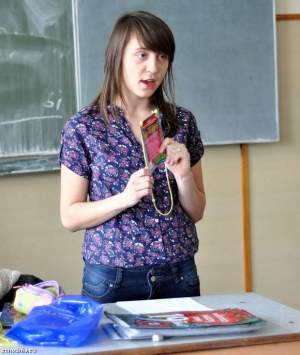 Blanka Chrobaczyńska z tarnobrzeskiego sztabu Wielkiej Orkiestry Świątecznej Pomocy (uczennica klasy 2f tarnobrzeskiego Kopernika), wyjaśnia wolontariuszom, jak mają pracować w dniu XIX Finału WOŚP.W siedzibie tarnobrzeskiego sztabu Wielkiej Orkiestry Świątecznej Pomocy, czyli w Liceum Ogólnokształcącym im. Mikołaja Kopernika wolontariusze Orkiestry spotkali się ze sztabowcami oraz policjantem z Komendy Miejskiej Policji w Tarnobrzegu. Zanim ochotnicy odebrali identyfikatory WOŚP, przedstawiciel tarnobrzeskiej policji, opowiedział zebranym o podstawowych zasadach bezpieczeństwa.