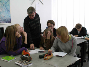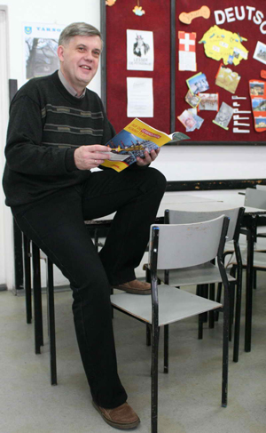 Zbigniew Ryba podczas zajęć z grupą języka niemieckiego 1N2