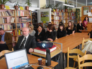 8 kwietnia 2009r. odbyła się w naszej szkole debata poświęcona wizji szkoły w przyszłości. Wzięli w niej udział uczniowie i nauczyciele tarnobrzeskich szkół ponadgimnazjalnych. W czasie pierwszej sesji uczniowie klasy IIb biorący udział w projekcie British Council "Challenges in Schools" przedstawili wyniki całorocznej współpracy ze szkołami z Wielkiej Brytanii, Łotwy i Słowacji. W drugiej części nauczyciele i uczniowie dyskutowali na ten temat w odrębnych grupach. Pedagodzy zostali poinformowani przez prowadzącego projekt o kierunkach rozwoju edukacji w Europie, zaś młodzież - metodą warsztatową - próbowała opisać szkołę swoich dzieci w przyszłości. Ostatnia sesja była podsumowaniem pracy obydwu grup, a na jej zakończenie przedstawiony został wspólny pomysł 48 europejskich placówek. Poniżej prezentujemy zdjęcia z tego spotkania.