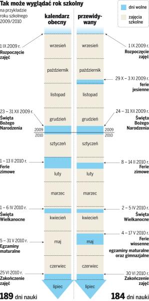 Nowy kalendarz szkolny opracowali dolnośląscy pedagodzy. Tuż przed świętami wielkanocnymi trafił on na biurko szefowej MEN Katarzyny Hall. Zmiany podobają się nauczycielom, którzy wskazują, że obecny system w pierwszym semestrze roku szkolnego przewiduje za mało wolnego. Z kolei matura paraliżuje prowadzenie lekcji dla pozostałych klas.