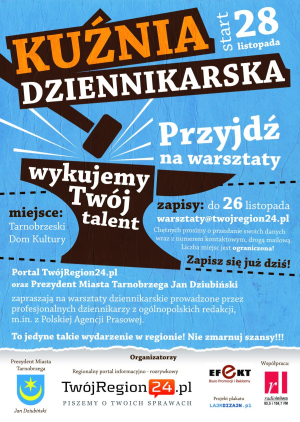 Na warsztaty zapraszają: portal www.twojregion24.pl i Prezydent Miasta Tarnobrzega Jan Dziubiński. Współpraca: Radio Leliwa, Biuro Promocji i Reklamy - Efekt.