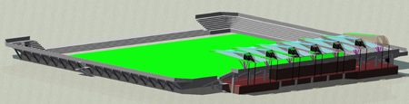 Koncepcja przewiduje budowę czterech trybun, także za bramkami. Jedna z nich, od strony ulicy będzie miała zadaszenie. Cały kompleks wyposażony zostanie w niezbędne instalacje sanitarne, kanalizacyjne i elektryczne.