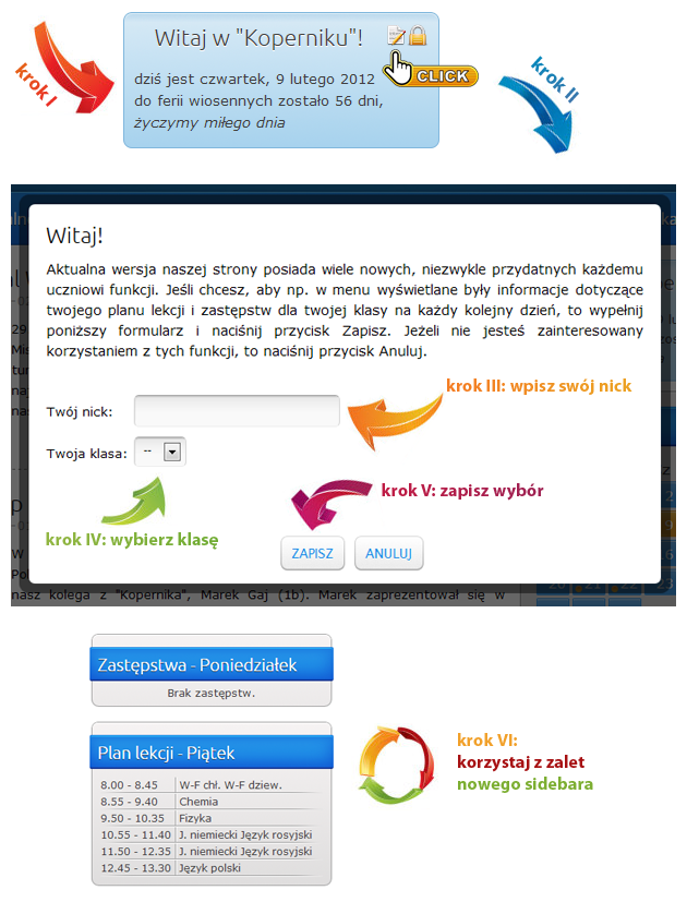 Spersonalizuj swój sidebar na stronie Kopernika! Tylko 6 poniższych kroków pozwoli Ci w łatwy sposób być na bieżąco ze swoim planem lekcji!